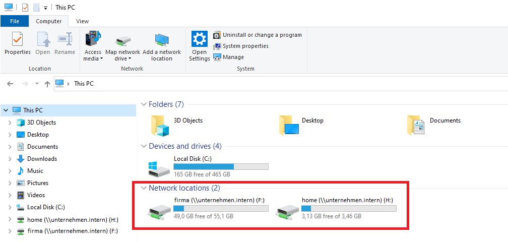 Einmal eingerichtet, können zum Beispiel zum einen personalisierte Daten unter dem Laufwerk H: abgespeichert und gemeinsam verwendete Dokumente unter F: aufbewahrt werden. Dies erspart umständliche Zwischenwege über die lokale Festplatte und andere Speichermedien.
